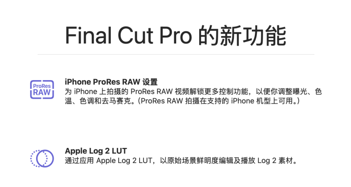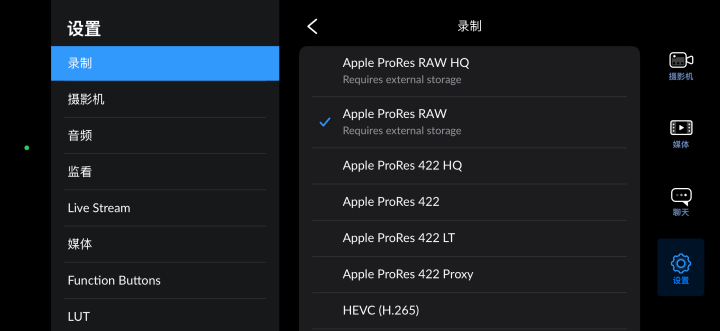 除了硬件上的齐全,想要用它拍摄ProRes RAW,用原生相机肯定是不行的,苹果推出了FinalCut Camera,这个软件还行,但是不太行,对于经常用相机拍摄视频的用户来说体验智能说一般。
