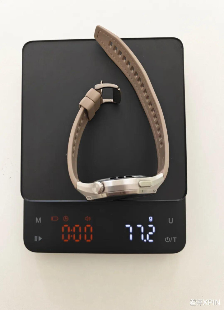 不过这位同事也给我反馈了一点缺点,就是这个表骑车的时候感觉稍微有点重了。我拿回来称了下,算上表带重量能来到 77.2g。